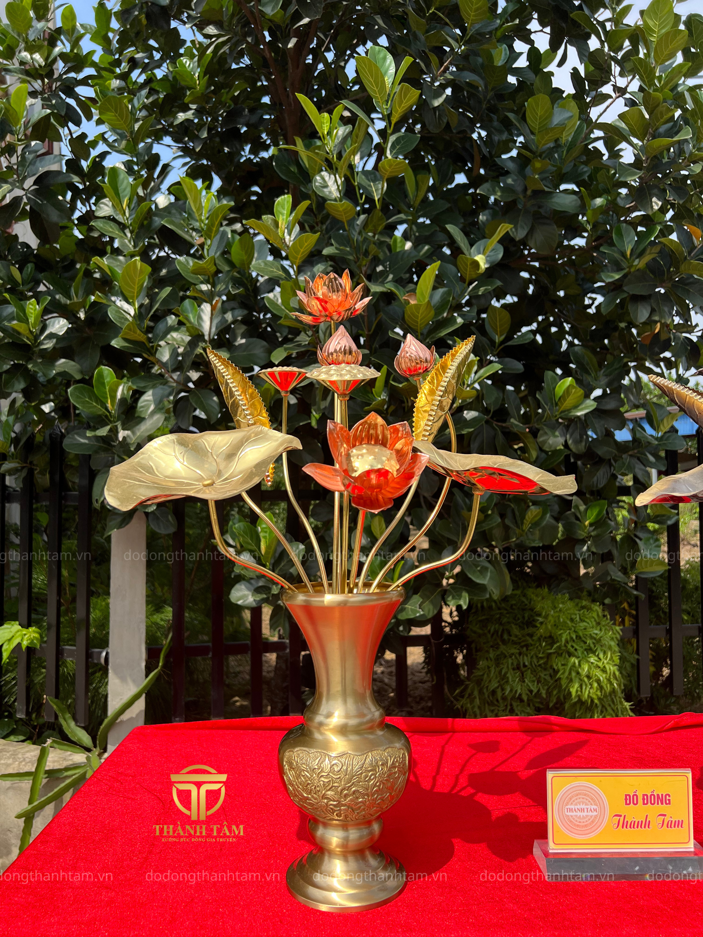 Chất liệu: đồng Cattut, các cánh hoa sen được chế tác bằng đồng đỏ
